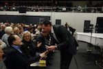 Donaueschinger Musiktage 2015, 09, Abschlusskonzert, Dirigent François Xavier Roth -Gerhard Rühm, Renate Liesmann, Erik Pauly (Oberbürgermeister)