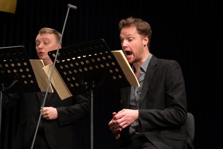 Donaueschinger Musiktage 2025 18.10.25 5 EXAUDI, Zimmermann & Aperghis Georges Aperghis Tell Tales für sechs Stimmen und Viola (UA) Mitwirkende Tabea Zimmermann Viola EXAUDI James Weeks Leitung